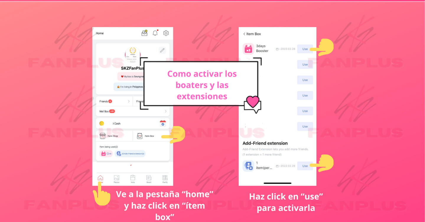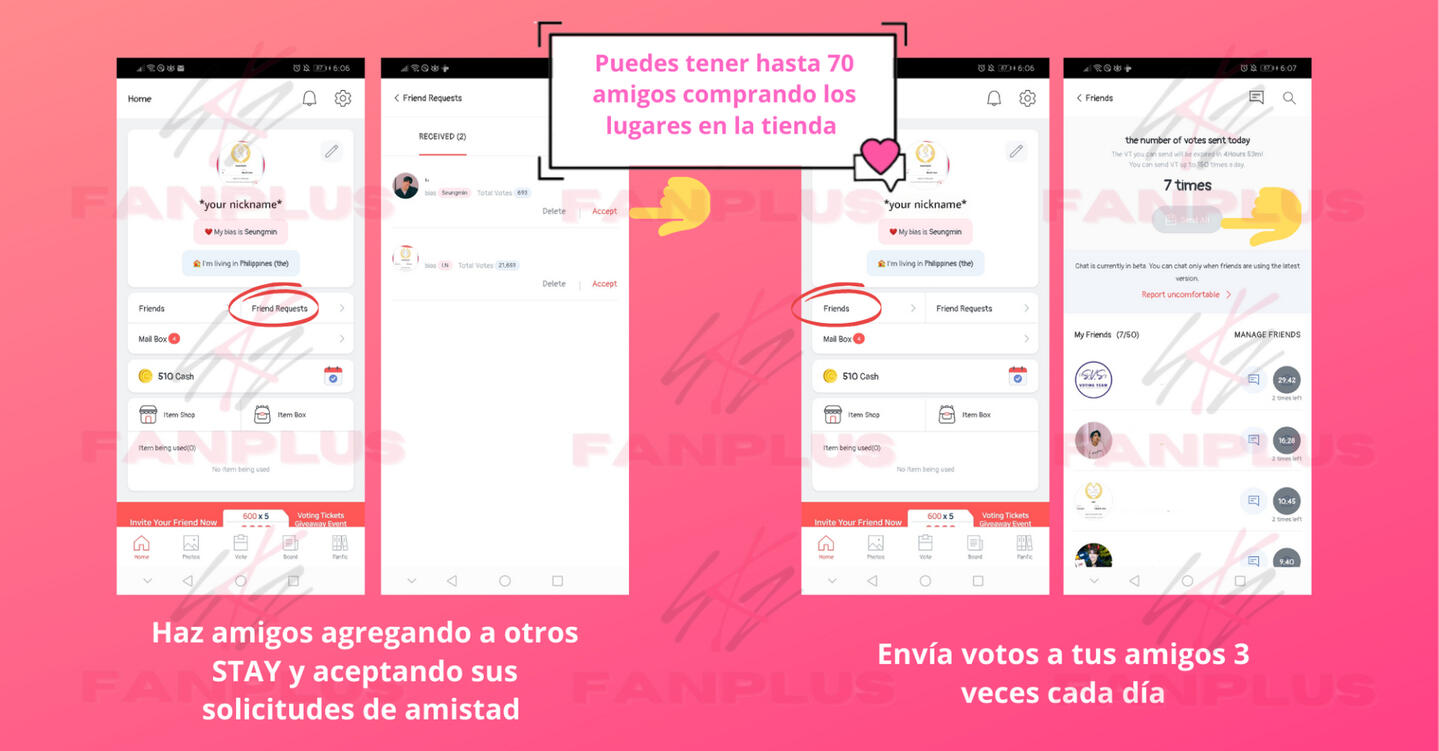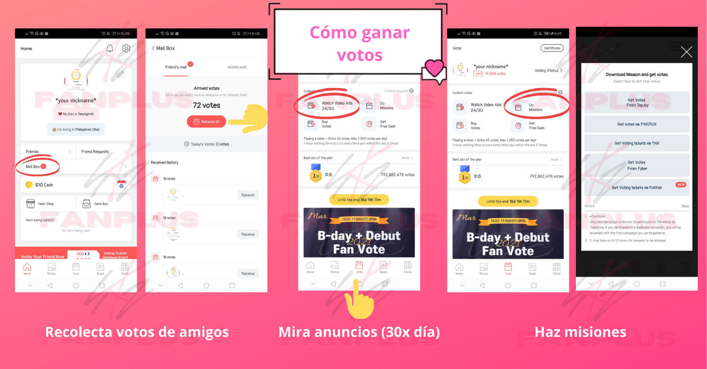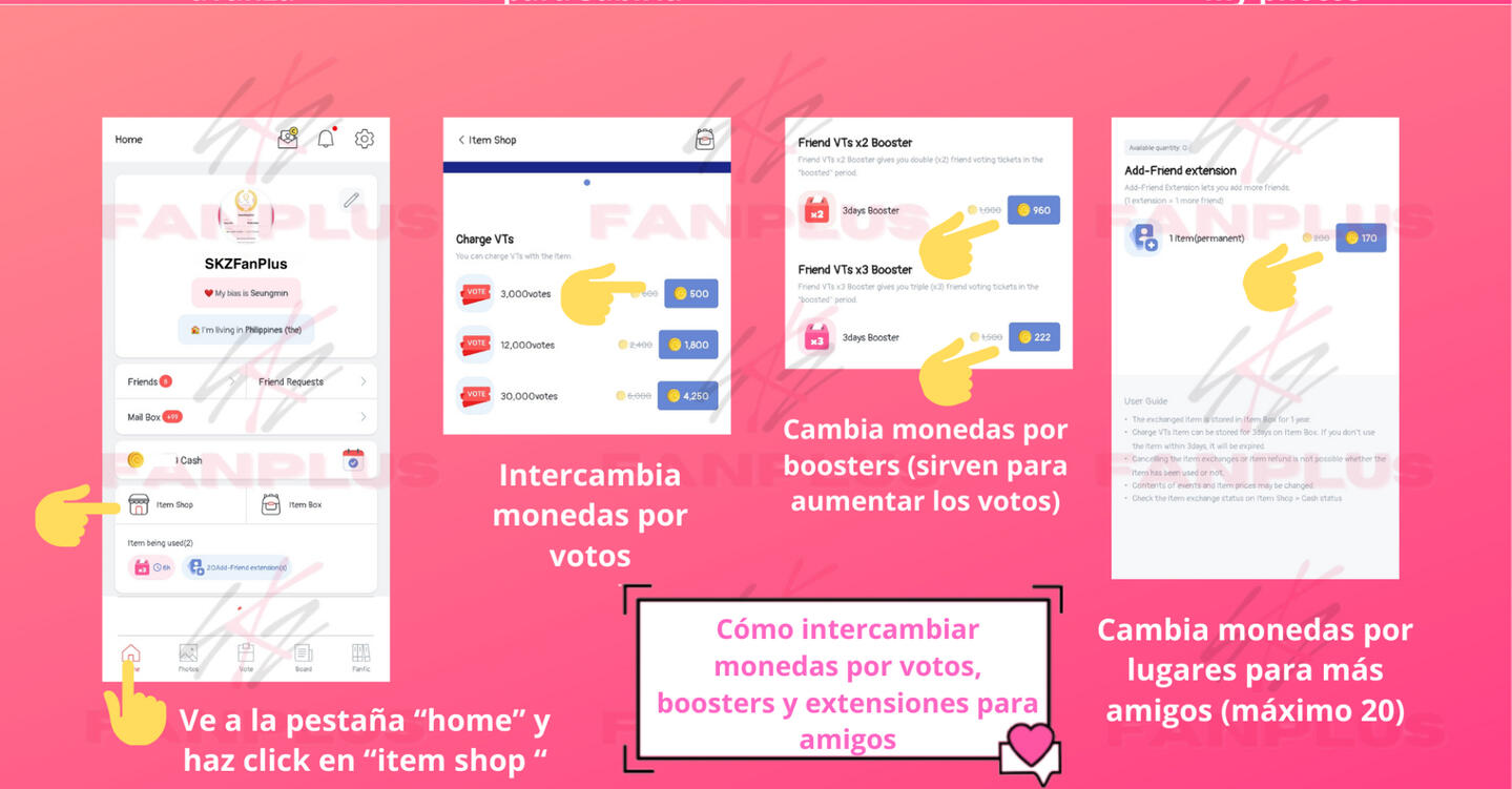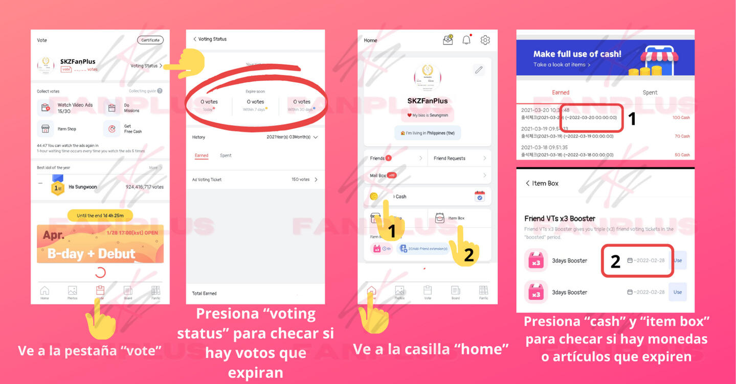 NOTA: Activa los boosters sólo en periodo de votación (porque los votos expiran a los 90 días) y lo más cerca de las 0 KST y antes de recoger los votos de tus amigos, así maximizas su uso