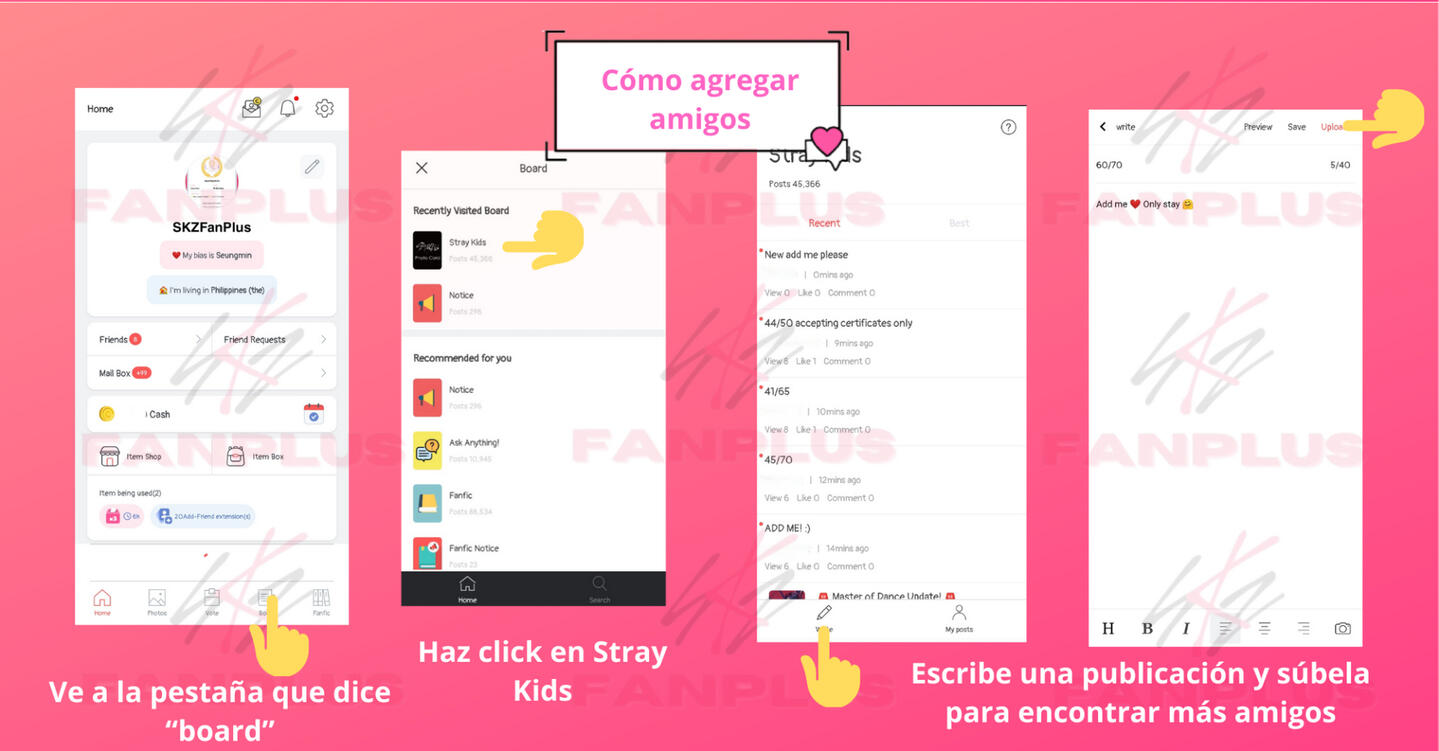 AGREGA AMIGOS(Obtén más amigos publicando en el tablero de SKZ así otros sabrán pueden agregarte.