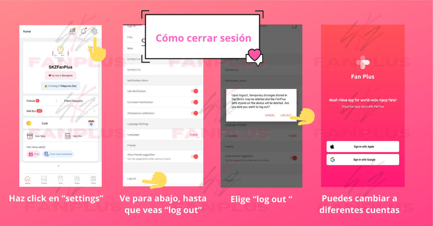 Cierra sesión en tu cuenta para crear o abrir sesión en cuentas diferentes.NOTA: Al cerrar sesión tus votos permanecerán guardados, pero los datos de juegos en proceso en misiones serán borrados así que recuerda terminarlos antes de cerrar sesión.